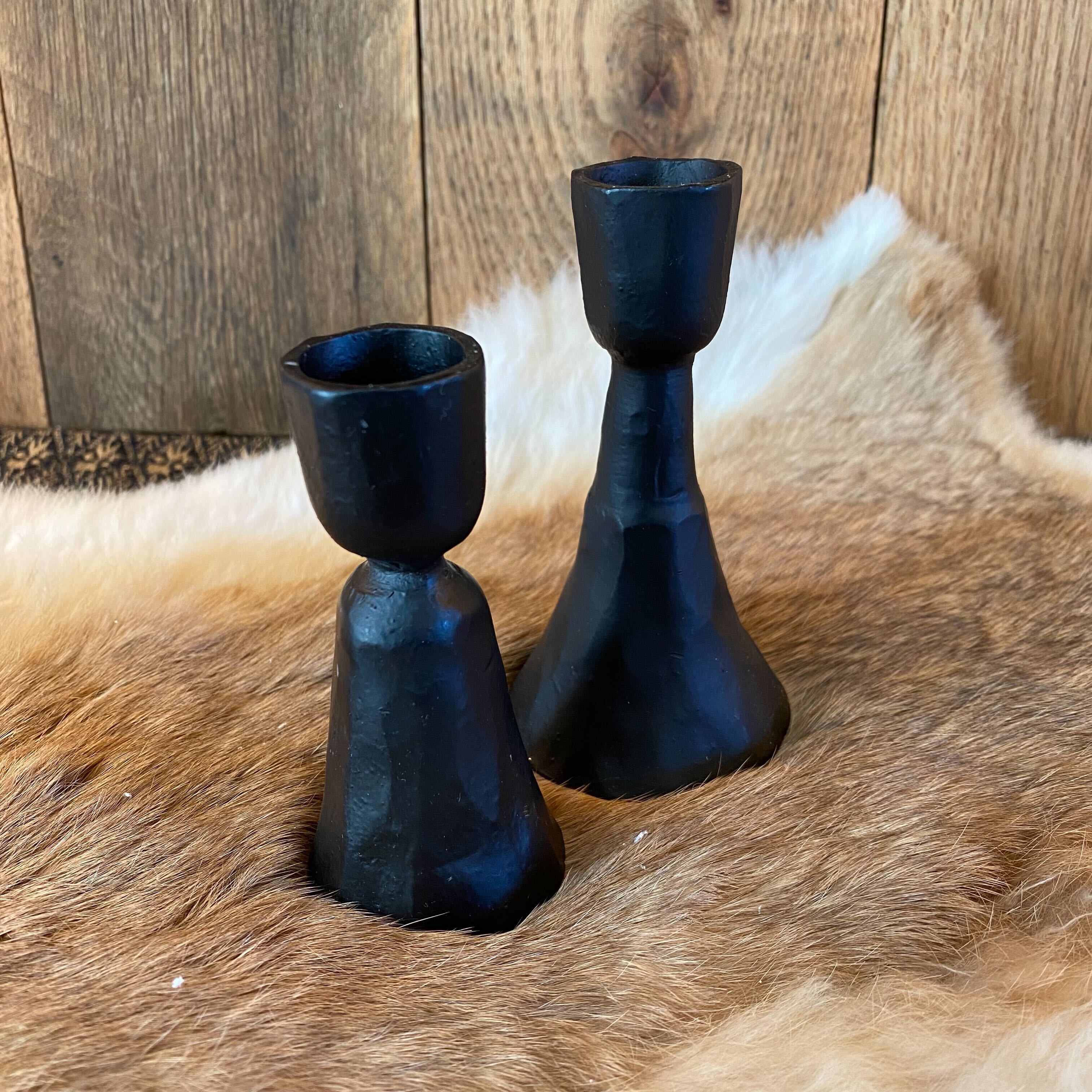 Rustic hammered black iron candle holder for taper candles. Each candle holder is slightly different. These are not exactly perfectly, they are meant to be rustic and perfectly imperfect!